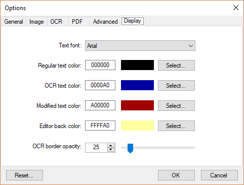 Various options that control how the OCR is performed can be set from the dialog accessible via the Options… button on the OCR dialog.